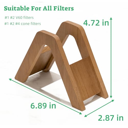 Click for More Images Elegant Decoration: Elevate your kitchen décor with our stylish rubber wood coffee filter holder. The sleek design and natural wood finish of the v60 coffee filters holder add a touch of elegance to any countertop....