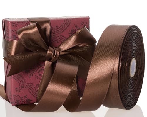Click for More Images Exquisite Brown Satin Ribbon: Crafted from premium polyester, our single-sided satin ribbon boasts vibrant color and captivating sheen, adding a touch of luxury to your crafts and gifts.Delicately Woven: Soft and smooth, a...