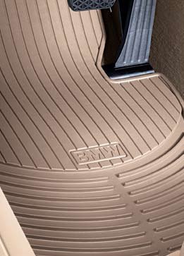 BMW 3 Series (E90) 2006-2012 all-weather rubber floor mats -- FRONT Beige (actual color is light brown) Custom-fitPure rubber with 1/2" deep channelsTraps water, slush, snow and dirtWill not crack, curl or stiffenGrip fasteners to hold them in...