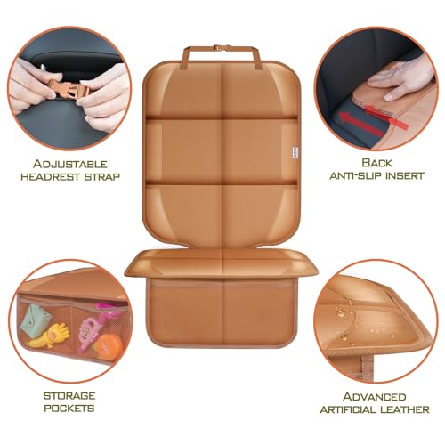 Click for More Images ?Protect Seat from Infant Booster Imprint?- Car seat protector made of 600D fabric and PVC corner. Foam padding inside, good resilience. Installed under the baby car seat to protect seat against wear and tear, effectively...