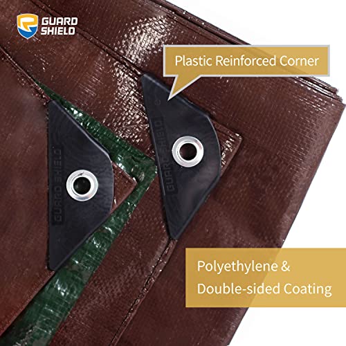 Click for More Images 7mil Medium Duty Brown/Green Tarp.Woven and Coated Polyethylene With Heat Sealed Seams and Rope In Hem.Rustproof Aluminum Grommets Every 3 Feet.Portable, Washable, Durable and Reusable.Can be used as weather and yard...