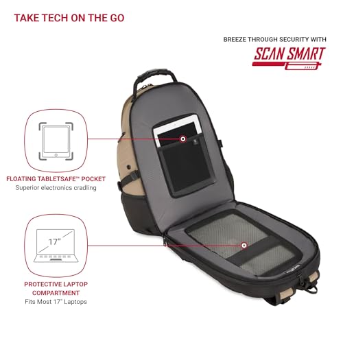 Click for More Images 17-Inch Laptop Backpack: Pack all your gear and then some with a padded, TSA-friendly SmartScan tech compartment that fits a 17” laptop and an 10” tablet and lays flat through airport security and an impressive array of...