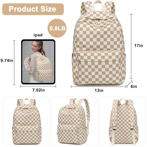 Click for More Images Adorable Backpack for girls and women: Classic checkered pattern. It captures the spirits of imagination and fashion for your love girls or wife.Teens Backpack, size 12"x17"x6.5"(L*H*D), ideal for a 15" laptop, with padded...
