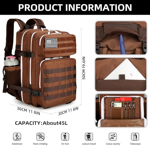 Click for More Images SUPERIOR DURABILITY- Each backpack measures 22 x 10 x 14 inches? 45 Liter Tactical Assault Backpack is made of high quality 900D Oxford fabric, super durable for daily use or outdoor adventure.MULTIFUNCTIONAL COMPARTMENT-...