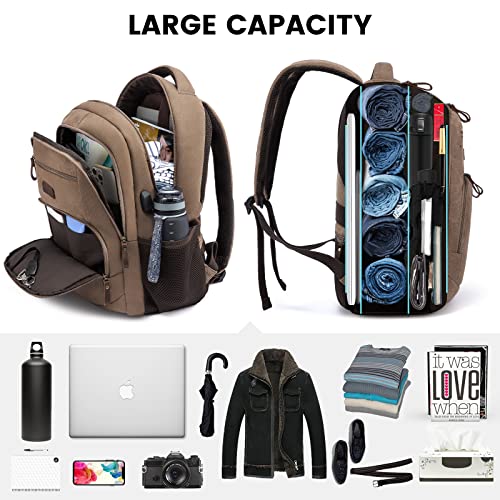 Click for More Images VINTAGE DESIGN & DURABLE MATERIAL: This lulusnie brown canvas backpack features a classic magnetic snap in the front, while opening and closing the bag more convenient add the bag a vintage look. Made of premium ripstop...