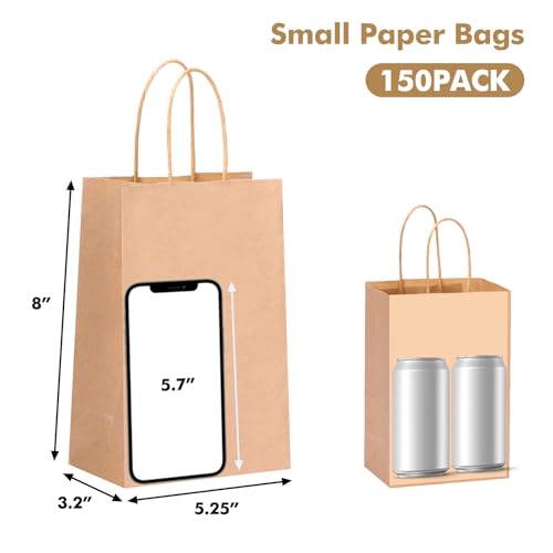 Click for More Images Paper Bags Set: There are a total of 150 brown gift bags with handles. The size of small paper bag is 5.25 x 3.2 x 8 inches. You can use them to package various small crafts, such as homemade chocolates, cookies, candies,...