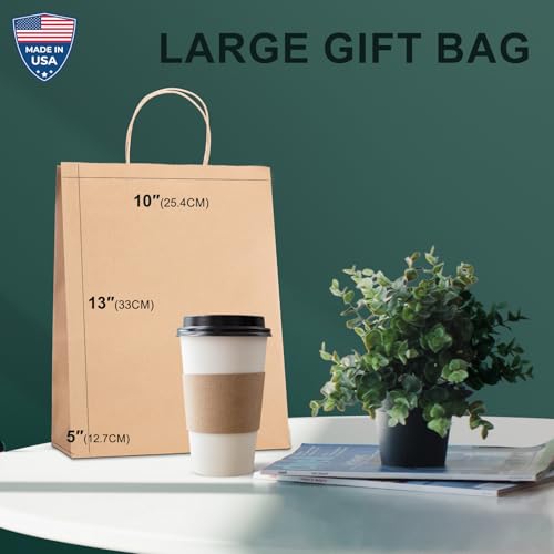 Click for More Images Paper Gift Wrap Bag Size: 10x5x13 inch 50pcs brown paper bags perfect for shopping bags, gift bag, welcome bags, party favor bags,retail bags, merchandise bags or food service takeout bags.Heavy Duty 100G Kraft Bags: Made...