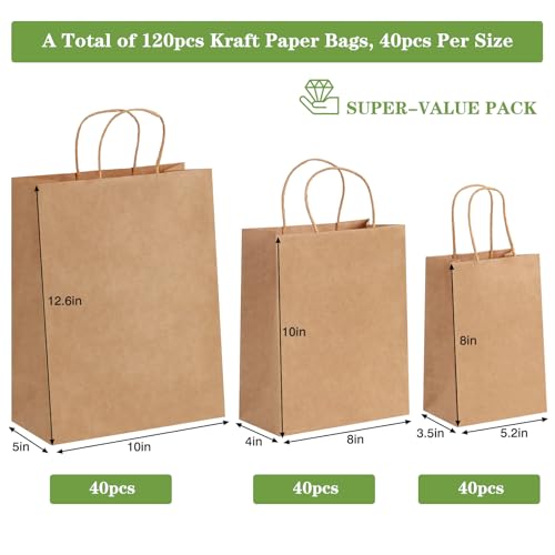 Click for More Images Versatile Paper Bags with Handles: Includes 3 sizes: 5.2"x3.5"x8", 8"x4"x10", 10"x5"x12.6" (40 per size). You can choose small, medium, and large kraft paper bags to meet your different needs, great for parties, birthdays,...