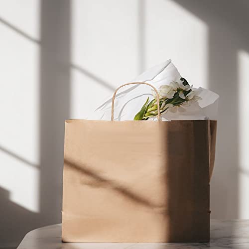 Click for More Images Premium Quality Kraft Paper Bags: Made of certified food grade kraft brown paper, our 70lb bags with handles are great for packing food, storing food, and taking food on the go. Designed with a flat square bottom, our bags...