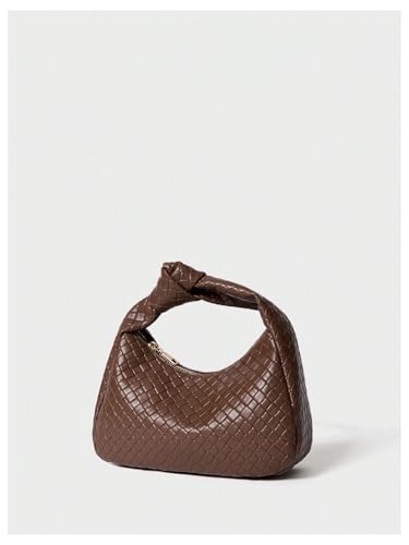 Click for More Images Made of PU leather fabricTop, Handle, Knot, Zipper Closure, Plaid, Textured Pattern, Leather Bag, Vintage Hobo HandbagThe old money handbag is suitable for business, commute, work, office, casual, etcRoomy enough to hold...