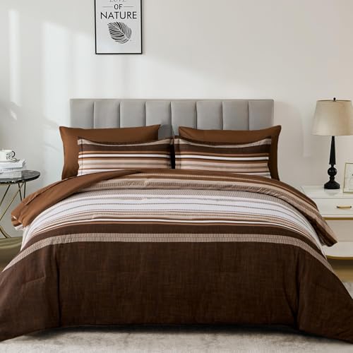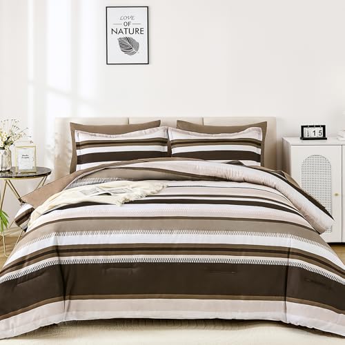 Click for More Images Modern Sophisticated Striped Design: Queen comforter is made with brown Striped pattern ,Unique design and bright color palette create an extraordinary look, if you want to create the ultimate minimalist style, it will be...