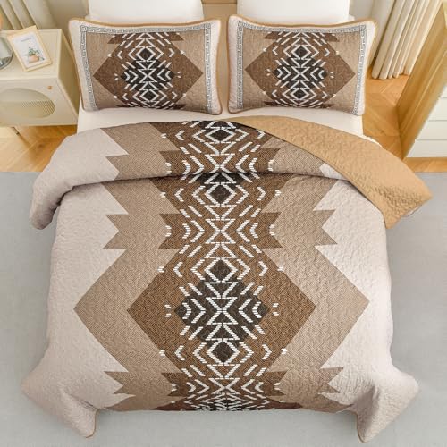 Click for More Images ?PACKAGE & SIZE?:This brown queen quilt set include 3 Piece.Available in quilt queen: 1 quilt (90"x 96") and 2 pillowcases (20"x 26").NOTE: No Pillow Insert Includes?UNIQUE BROWN BOHEMIAN GEOMETRIC DESIGN?:This brown...