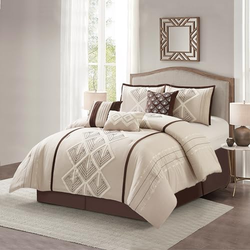 Click for More Images 5-Piece Comforter Set: This bedding comforter set offers a reversible design with white or brown colors, providing versatile luxury bed decor for any bedroom. The bed in a bag set is made from soft, down alternative...