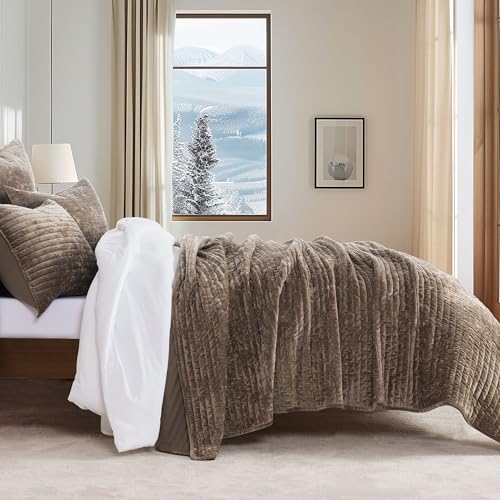 Click for More Images TIMELESS QUILT - Elevate your bedroom with our channel velvet quilt set. The intentional shimmer on the unique velvet fabric creates a mesmerizing, ever-changing, luxurious sheen, adding an extra layer of sophistication that...