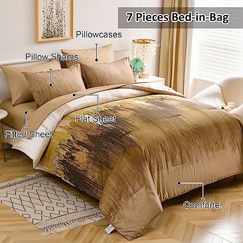 Click for More Images [7 Pieces Bed in A Bag] Brown bed in a bag king with 1 comforter 90" x 103" + 2 pillowcases 20"x36"+1 Fitted Sheet 78"x 80"x14“+1 Flat Sheet 102x 108"+2 Pillow Shams 20"x 40".[Special Gradient Design] 7 pieces bed in a bag...