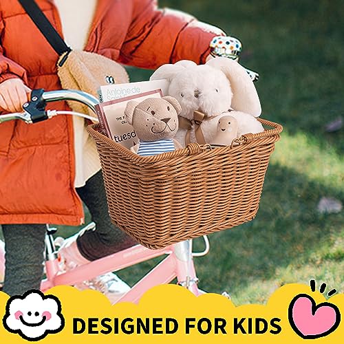 Click for More Images Cute Design - The kid's bike baskets measure 9 ¾"L x 7" W x 6 "H and is a trapezoidal design with lovely colors, a good choice as a gift for your child.Unfading & Waterproof - Each basket is hand-woven with plastic wicker...