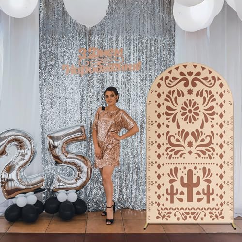Click for More Images [Double-sided Arch Design]: this fabric arch backdrop cover features a double-sided print design, with the same Mexican-themed print on the front and back, and a zipper at the bottom; This portable backdrop stand cover can...