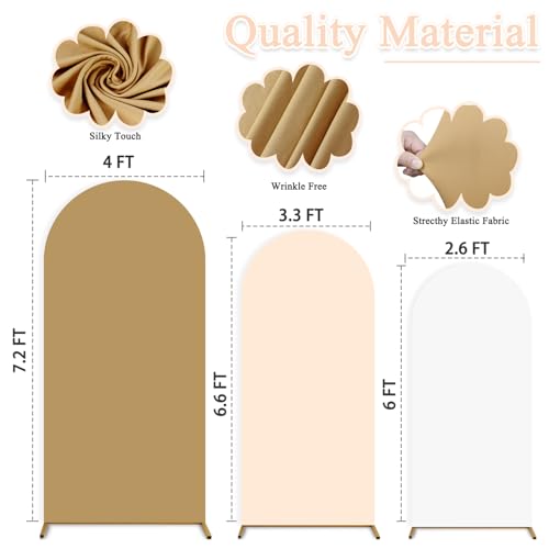 Click for More Images ??Package Information - Arch Backdrop Cover Set of 3?You will receive 3 pieces double-sided arch backdrop cover (frame not included). Small white arch cover: 2.6x6FT(WxH), medium beige arch cover: 3.3x6.6FT(WxH), large brown...