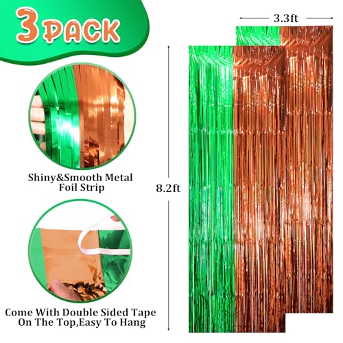 Click for More Images Package Included: 3 packs of green and brown foil fringe curtains, the size of the foil curtain is 3.3*8.2ft. It's long enough to fit any occasionPremium Material: This brown and green backdrop decoration is made of tinsel,...