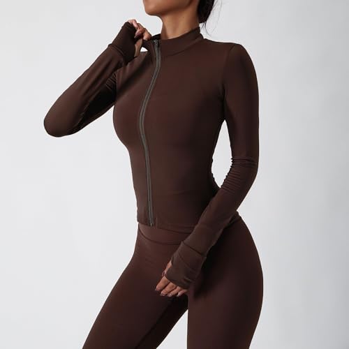 Click for More Images Long Sleeve Crop Top Athletic Jacket Outwear with Thumb Holes to Keep the Sleeves in place for enhanced mobility and additional warmth. You will be comfy, free, dry and more focued on the fitness. The U neck design of this...