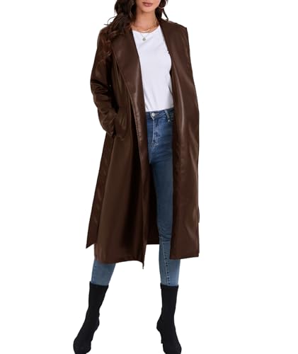 Click for More Images ??Material Type?? Faux Leather, Cool and Cute to wear??Washing?? Machine Washable (Hand Wash Recommended)??Features&Design?? Long Sleeve, Notched Lapel Collar, Belted, Loose Fit, Open Front, Long Leather Trench Coat, Black...