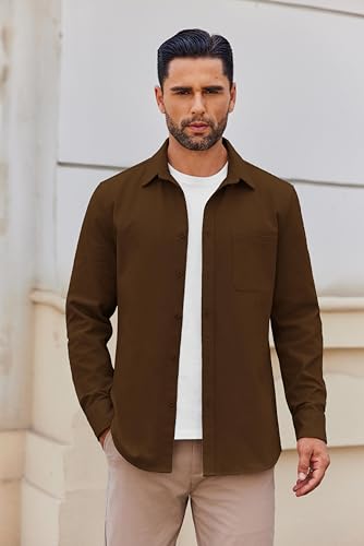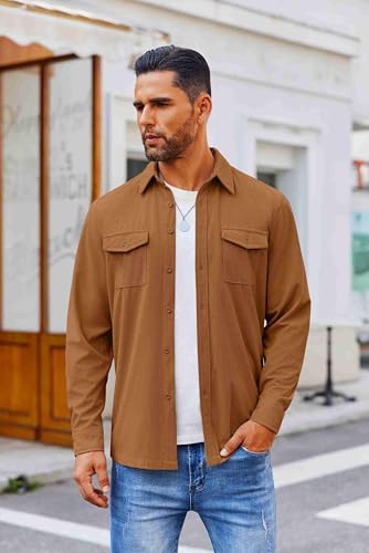 Click for More Images ?Premium Fabric?This mens lightweight shirt jacket is made from high quality cotton fabric, designed to provide you ultimate comfort while keeping you looking effortlessly stylish?Classic Design?This mens button down shacket...