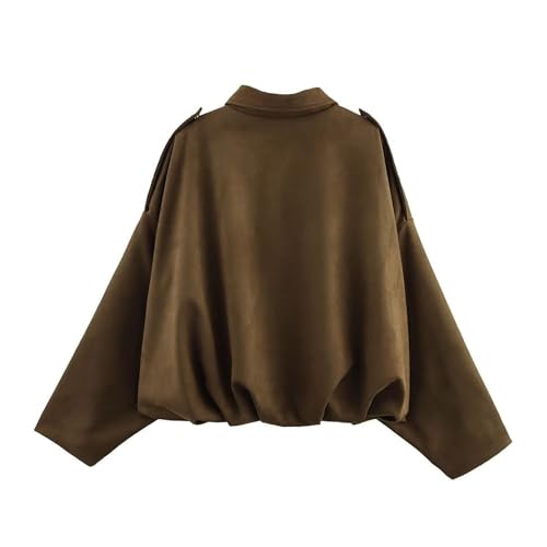 Click for More Images Zip up closureV Neck, crop length, relaxed fit, colorful and fashionThis oversized faux suede bomber jacket effortlessly pairs with versatile wardrobe staples like slip dresses, graphic tees, chunky cardigans, layered...