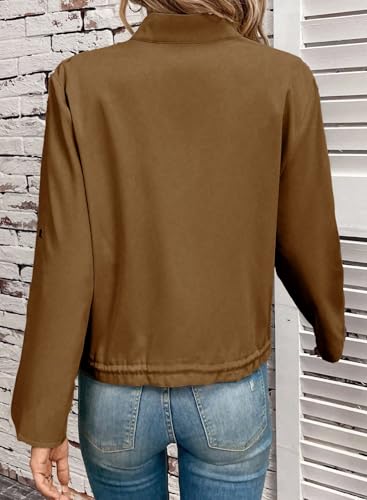 Click for More Images Bomber jacket is made of lightweight, premium fabric, provide exceptional comfort and durabilityWomen's moto biker bomber jacket, long sleeve varsity jacket, dressy casual outfits, ladies trendy outerwear, snap button up...
