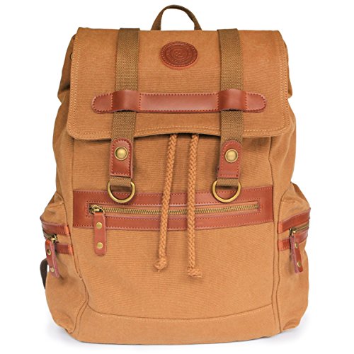 Slim Sack Brown Canvas Backpack by CaseElegance - Designer Laptop and daypack backpack RUGGED BUT SOFT - This beautiful bag is constructed with high-density canvas fabric and accented with genuine leather, maintaining the perfect balance between...