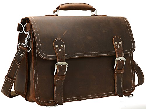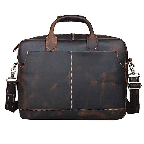 Info: Material: Top layer crazy horse cowhide leather (exterior) + Polyester cotton (interior)Size: 16.9 (L) x 12.3 (H) x 4.3 (W) inchNet Weight: 3.6 poundsHardware: Brass-tone zipper hook and loop (stainless steel) Strap: Canvas adjustable strap...