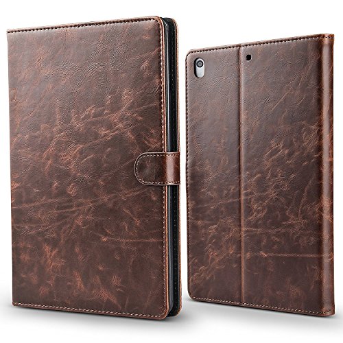 TechCare Genuine Leather Smart Cover Protective Slim Folio Flip Stand for Apple iPad Pro 10.5 Inch with Card Slot Magnetic Auto Sleep/Wake Up function. ONLY FOR: iPad Pro 10.5 inch 2017 Released NOT FOR: iPad Pro 12.9 inch 2015/ iPad Air 2 2014/...