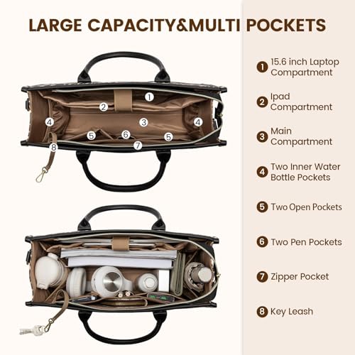 Click for More Images Effortless Organization & Ample Space: This stylish laptop bag for women (Dimensions: 16"L x 12"H x 5.6"W) is designed to cater to your organizational needs. Laptop purse boasts well-padded compartments perfectly suited for...