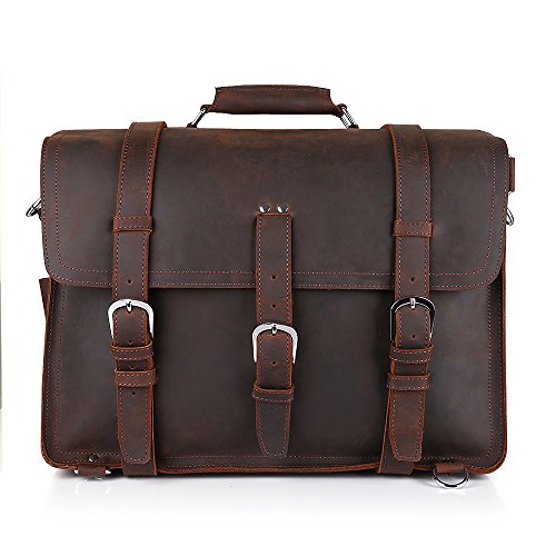 This bag can store a laptop up to 17 inch, best for 16.5 inch ones. Material: Top crazy-horse brand cow leather. Item weight: About 5.5 lb. Dimensions: width: 17.32", tall (height): 12.41" and thick: 7.87". We have modified the straps as...
