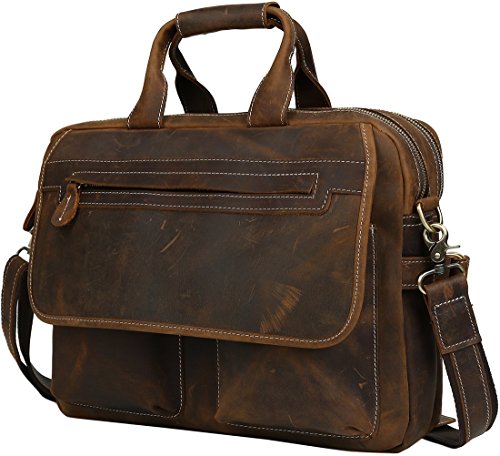 Material: leather Size: width-14.9 inches / 38 cm, height-10.4 inches / 26.5 cm, thickness-4.7 inches / 12 cmStyle: casual, vintage Package Contents: 1 x bag Made from a special oiled leather material which features special scratches. It will...