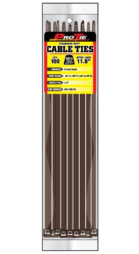 ProTie Brown Standard Duty Color cable ties are made from high strength and lightweight 6/6 nylon. Nylon 6/6 is a hygroscopic material, which absorbs and releases moisture, is non-toxic, and has a working temperature range of-40 to 185-Degree F...