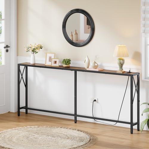 Click for More Images 70" Sofa Table With Charging Station: We know what you want, the sofa table is equipped with 2 outlets, 2 USB ports and 78-inch power cord. In addition, you can place the power strip where you like by adjusting the tabletop...