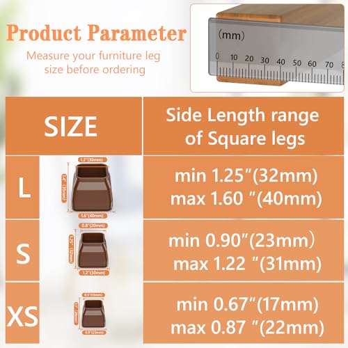 Click for More Images [Buying Tips and After-Sales Guarantee]: Please measure the size of your furniture feet before buying. Square chair leg side length range: Large: min 1.25?(32mm) - max 1.60?(40mm). Small: min 0.90?(23mm) - max...