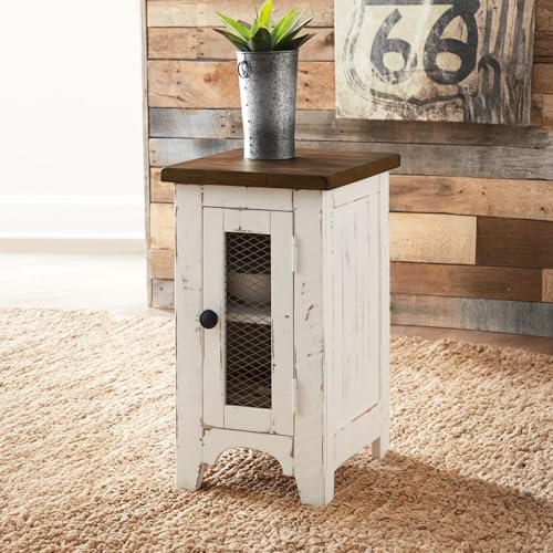 Click for More Images CHAIR SIDE END TABLE: The storage space makes this side table the perfect embodiment of beauty and practicality in your home. Distressed with a reclaimed look, it'll entice everyoneHANDSOMELY CRAFTED: Table is made of...