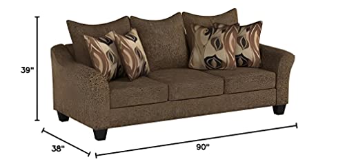 Click for More Images Textured brown fabric upholstery with overstuffed Back Cushions to provide comfort, throw pillows includedHigh-Density foam Seat Cushions covered by textured brown fabricMade in America. Slightly rolled arms, plastic...