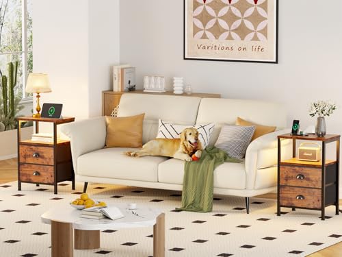 Click for More Images Nightstand Set of 2 with Charging Station: This black night stands come with built-in 2 outlets and 2 USB ports, as well as a 4.9 foot power cord. Provide a convenient charging place for your mobile phone, bluetooth...