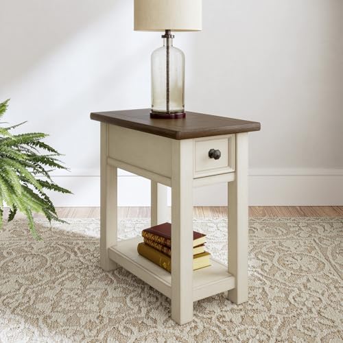 Click for More Images CHAIR SIDE END TABLE: Cottage lovers, rejoice—this table serves up style with a chipped white finish and inset mirror on the door that exudes pure elegance. You'll enjoy its shapely, refined formBEAUTIFULLY CRAFTED: Accent...