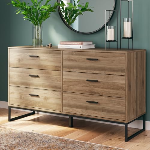 Click for More Images 6-DRAWER DRESSER: Does your bedroom need a refresh? And do you love mid-century modern design? Then this dresser is calling your nameQUALITY CRAFTED: Made with engineered wood (MDF/particleboard/plywood) and decorative...