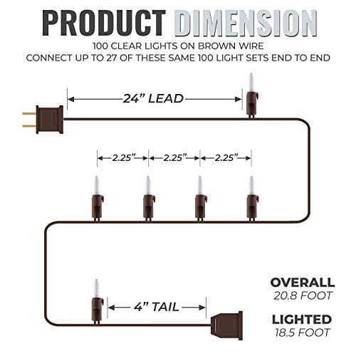 Click for More Images HOLIDAY JOY: Experience the joy of the holiday season with our christmas lights, featuring 100 clear incandescent bulbs. Designed for versatility, these christmas lights indoor are strung along a 34-foot sturdy brown...