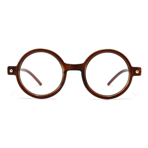 Gleyemor Retro Round Blue Light Glasses for Men Women 90s Vintage Costume Cosplay Eyeglasses (Brown)