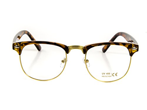 Product Description Classic horn rimmed frame that features clear lenses for a sharp sophisticated look. An iconic frame that will have you looking fashionable in any situation. Frame is made with tortoise shell acetate brow and arms, metal...