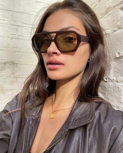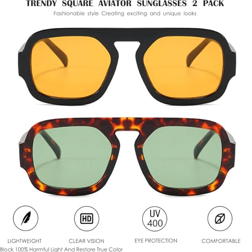 Click for More Images Trendy Aviator Sunglasses, With Bold,Thick Pilot Frames,, Feature a very Refined , Fashion, Chic, Elegant, Causal and Cool Aesthetic Touch,Whether you're soaking up the sun on a beach, heading out on a casual outing, or...