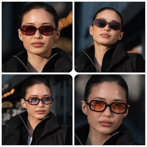Click for More Images Retro Narrow Rectangle Design:The sunglasses feature a small rectangular frame inspired by 90's trendy,offering a unique artistic look.The metal flakes on both temples add a simple yet distinctive touch.It's a must-have to...
