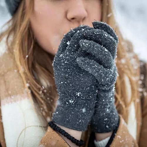 Click for More Images WARM & COMFORTABLE – Our full finger winter knit gloves is made of acrylic with spandex , it’s soft and comfortable. and the fleece lining design will keep you warm in the cold weather.STRETCHY & FIT WELL--- This warm...