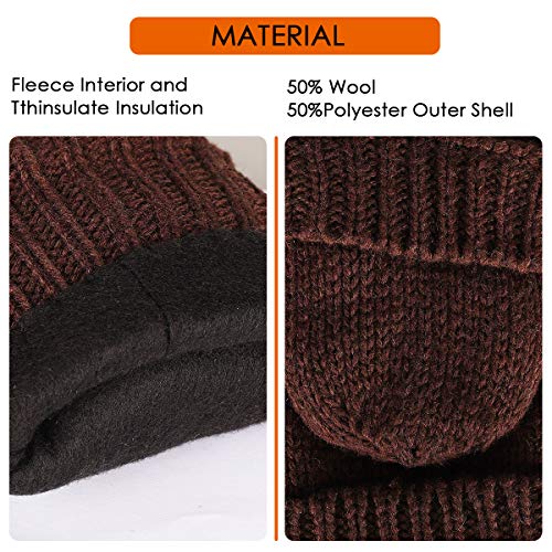 Click for More Images ? HEAVY DUTY SOFT ACRYLIC MATERIAL - Bodvera convertible mitten gloves are mede of 50% Wool & 50% Acrylic outer shell, fleece interior, 100% thermal insulation, leather palm. ? Inside of the winter knitting glove lined with...