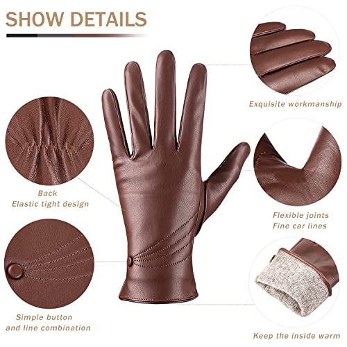 Henykany Winter Gloves for Women Warm Touchscreen Glove Windproof Elastic Texting Brown Gloves Women